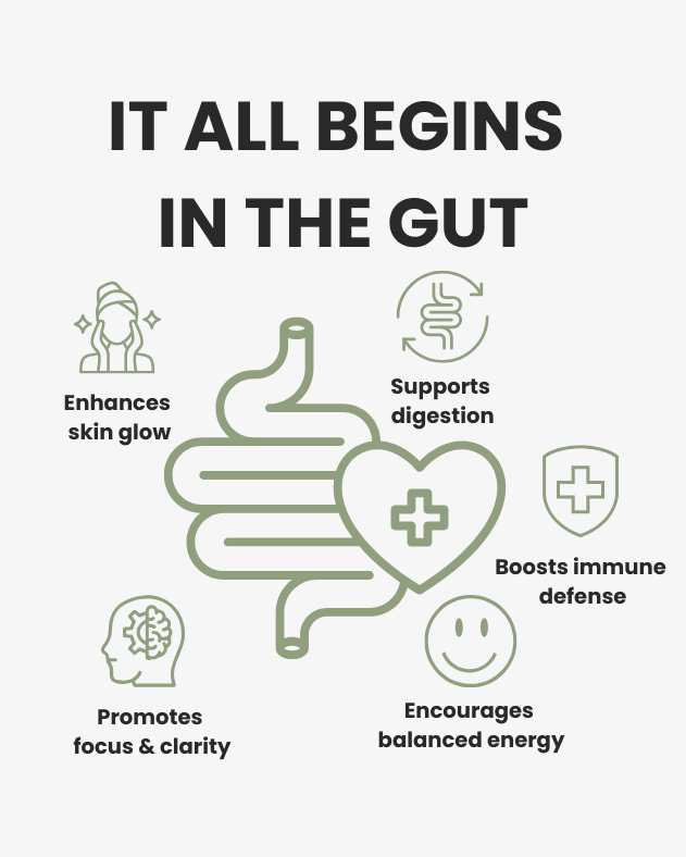 Our probiotic uses clinically backed strains and prebiotics designed to support digestion, focus, and immune balance.